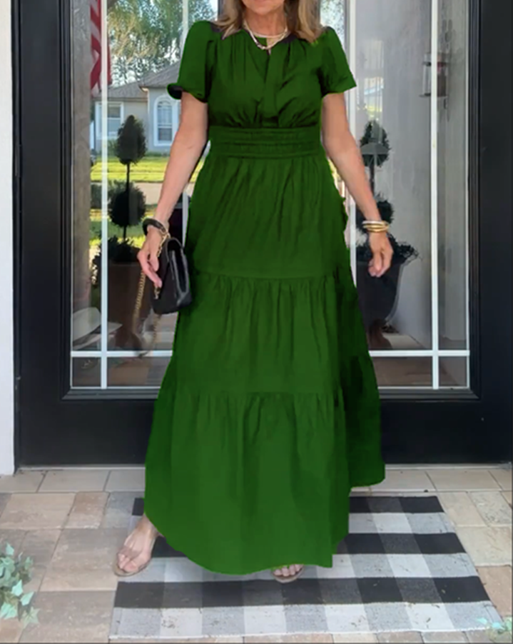 NEW 🔥Womens 2025 Summer Maxi Dress Short Sleeve V Neck Hollow Out Eyelet A Line Dresses