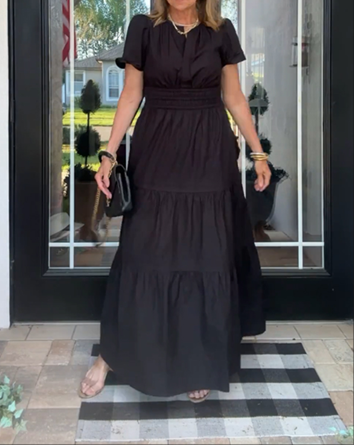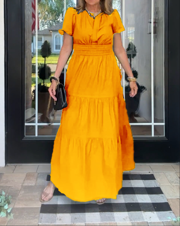 Women's Casual Dresses 2025 Summer Spring V Neck Short Sleeve Sundress Smocked Waist A Line Tiered Mini Dress