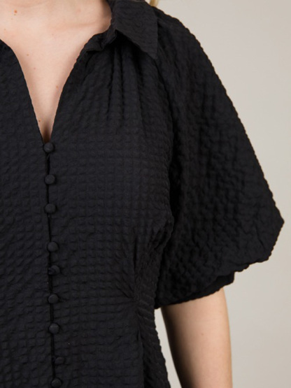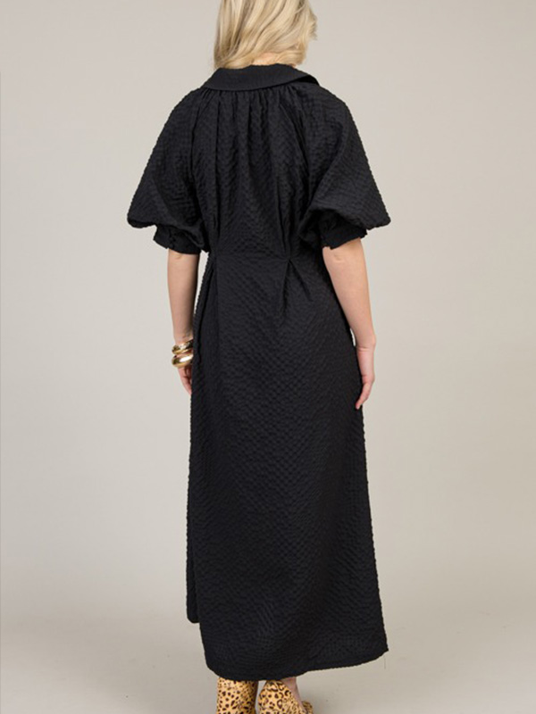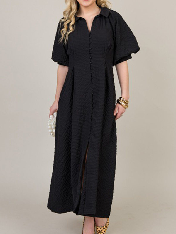 NEW🔥 Lapel Button Bubble Sleeve Cotton Linen Dress- Tax Free