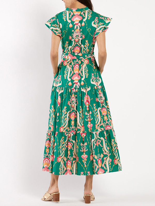 NEW🔥 Ruffle Button Tie Waist Printed Dress- Tax Free